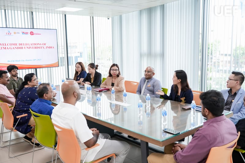 Trong khuôn khổ hoạt động mở rộng mạng lưới đối tác quốc tế, chiều ngày 20/10, UEF đã tiếp đón đoàn giảng viên từ trường Đại học Mahatma Gandhi (Ấn Độ) đến làm việc, thảo luận các định hướng hợp tác giáo dục. Buổi gặp gỡ đã tạo cơ hội để hai bên thảo luận sâu hơn về chương trình trao đổi giảng viên (Faculty Exchange) và các hoạt động học thuật, văn hóa dành cho sinh viên.