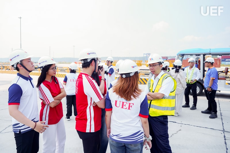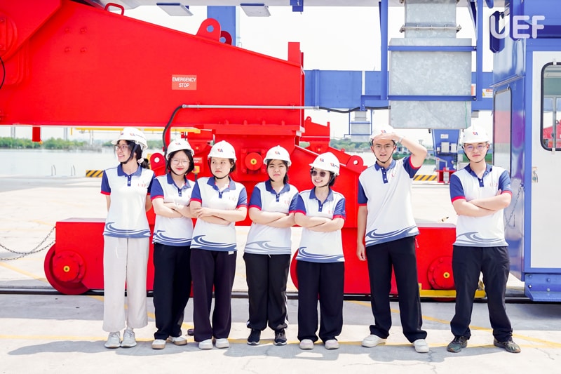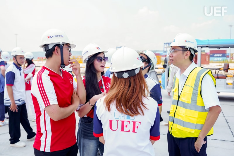 Sau phần lý thuyết, sinh viên UEF đã có cơ hội tham quan hệ thống vận hành ngoài bến cảng. Việc quan sát trực tiếp các thiết bị hiện đại làm việc với công suất cao, quy trình xếp dỡ hàng hóa và quản lý container đã giúp sinh viên hình dung rõ hơn về bài toán thực tế của ngành. Chuyến tham quan đã biến những lý thuyết trong sách vở thành kinh nghiệm trực quan sinh động, tạo điều kiện cho sinh viên có cái nhìn toàn cảnh về một dự án Logistics quy mô lớn.