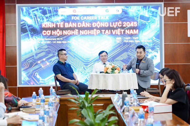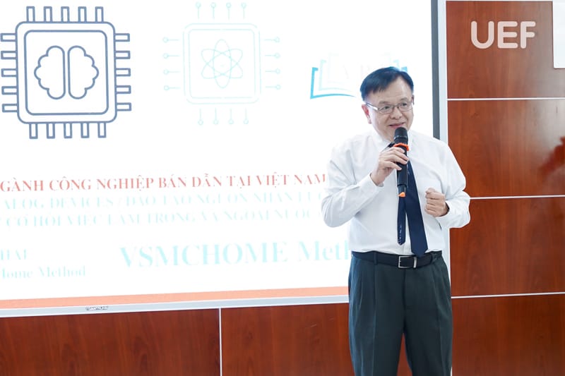 Mở đầu chương trình, ông Nguyễn Huỳnh Đức Khoa đã cùng UEFers khám phá vai trò vô cùng quan trọng của ngành công nghiệp bán dẫn đối với nền kinh tế Việt Nam, đặc biệt trong bối cảnh đất nước hướng đến mục tiêu trở thành quốc gia có thu nhập cao vào năm 2045 và đạt Netzero vào năm 2050.