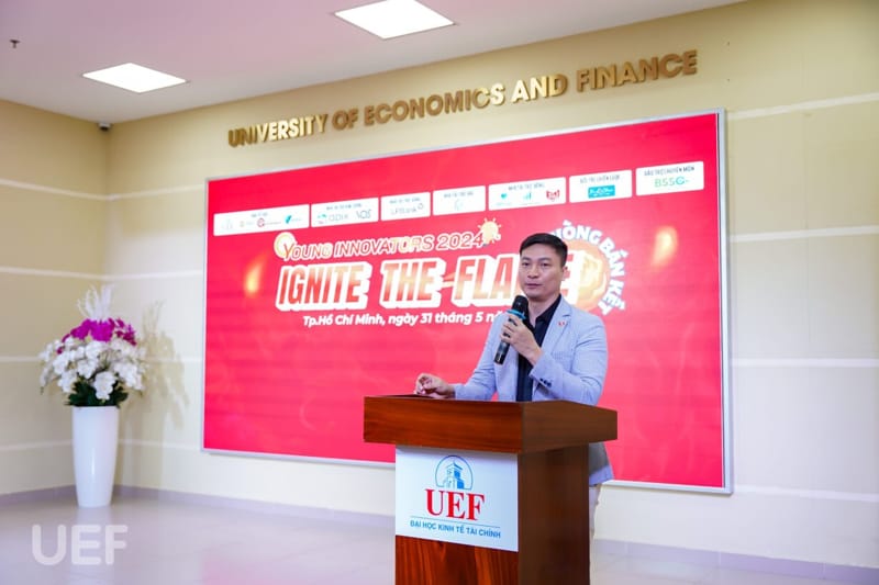 Phát biểu mở đầu, TS. Ngô Minh Hải đã nhấn mạnh tầm quan trọng của cuộc thi trong việc kết nối doanh nghiệp - sinh viên, tạo ra những dự án chất lượng và thúc đẩy sự phát triển bền vững của xã hội. Thầy cho biết: “Young Innovators 2024 là nơi để các doanh nghiệp tìm kiếm những ứng viên xuất sắc và những dự án tiềm năng để tiếp tục khai phá, phát triển. Còn đối với thí sinh, việc tham gia tranh tài là cơ hội để các bạn trau dồi và hoàn thiện bản thân, đặc biệt trong các lĩnh vực đầu tư, khởi nghiệp. Bên cạnh đó, mô hình Speed Up cũng cho phép các bạn trực tiếp tham gia vào những dự án thực tế của doanh nghiệp ngay từ khi còn ở giảng đường đại học. Có thể thấy rằng tại Young Innovators, chỉ cần có đam mê và lòng dũng cảm để hiện thực hóa đam mê đó thì mỗi một nhóm thí sinh đều có cơ hội chinh phục những thành công cho riêng mình”.