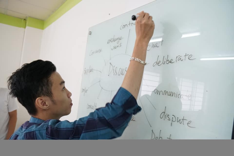 Với mục đích giúp các em sinh viên cải thiện vốn kiến thức tiếng Anh, xây dựng nền tảng vững chắc để có thể tham gia các kỳ thi tiếng Anh Quốc tế, workshop “Awaken Your Potential with Mindmap” sáng nay 6/4/2019 đã mang đến cho các em kiến thức cần thiết và thật sự bổ ích cho khả năng tiếng Anh của mình.