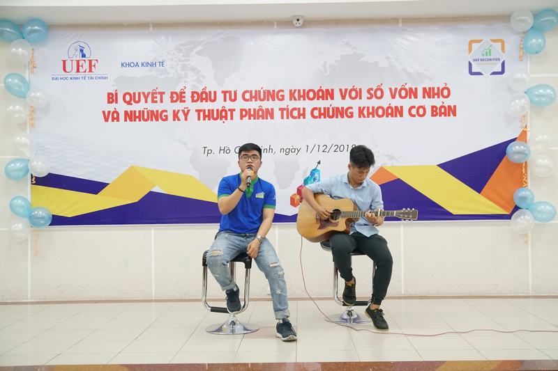 Sáng ngày 1.12 vừa qua, tại hội trường tầng 16 của Trường Đại học Kinh tế- Tài chính TP.HCM đã diễn ra một chương trình đặc sắc với chủ đề “Bí quyết đầu tư chứng khoán với số vốn nhỏ và những kỹ thuật phân tích chứng khoán cơ bản” do câu lạc bộ Chứng khoán thuộc Khoa Kinh tế - Trường Đại học Kinh tế - Tài chính thành phố Hồ Chí Minh tổ chức với sự tham gia hưởng ứng của rất nhiều các bạn sinh viên đam mê lĩnh vực đầu tư chứng khoán. Tham gia chia sẻ trong chương trình là Th.S Nguyễn Duy Thái – Nguyên giám đốc quan hệ khách hàng doanh nghiệp lớn tại ngân hàng Á Châu; Nguyên giám đốc cảnh báo sớm Miền Nam tại ngân hàng Maritime Bank; Nguyên giám đốc phê duyệt tín dụng và Giám đốc quản lý danh mục tín dụng bán lẻ Ngân hàng Maritime bank. Với kinh nghiệm dày dặn trong lĩnh vực tín dụng và kinh doanh chứng khoán, Th.S Nguyễn Duy Thái đã chia sẻ những bí quyết rất bổ ích và thiết thực dành cho các bạn sinh viên mới bắt đầu muốn làm quen với lĩnh vực chứng khoán, các bạn sinh viên đã được lĩnh hội những kiến thức vô cùng bổ ích và cảm thấy hài lòng về chương trình. Hy vọng câu lạc bộ chứng khoán sắp tới sẽ tổ chức nhiều chương trình hơn nữa để đem lại những giá trị tri thức bổ ích cho các bạn sinh viên đam mê chứng khoán. Sau đây là một số hình ảnh diễn ra trong buổi Workshop: