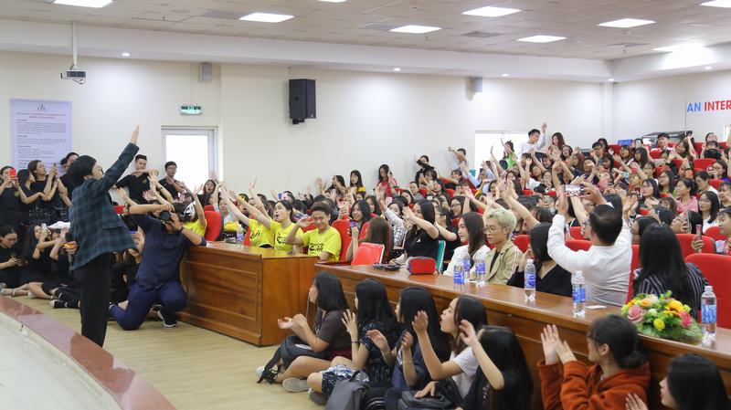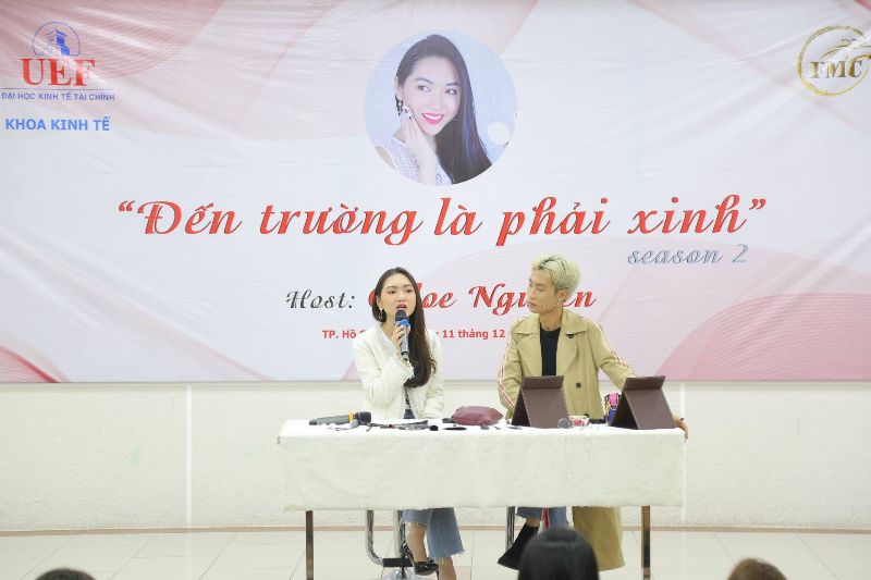 Workshop “Đến trường là phải xinh – Mùa 2” Sáng ngày 11.12 vừa qua, tại hội trường tầng 16 của Trường Đại học Kinh tế - Tài chính thành phố Hồ Chí Minh đã diễn ra một chương trình vô cùng đặc biệt mang tên “Đến trường là phải xinh – Mùa 2”. Chương trình được tổ chức bởi câu lạc bộ FMC thuộc khoa Kinh tế với sự tham gia chia sẻ các kiến thức về làm đẹp của vị khách mời vô cùng dễ thương và vô cùng hot trên các trang truyền thông dành cho giới trẻ hiện nay- Chị Chloe Nguyễn. Sức hút của chương trình đã thể hiện rất rõ ngay từ những phút đầu tiên khi chuẩn bị chào đón khách mời, rất nhiều các bạn sinh viên UEF đã đến tham dự chương trình từ rất sớm và chỉ trong vòng ít phút trước khi bắt đầu chương trình, hội trường tầng 16 đã không còn một chỗ trống, Ban tổ chức chương trình đã phải huy động rất nhiều ghế sub để phục vụ cho khán giả, nhiều sinh viên sẵn sàng ngồi không cần ghế để được nghe những thông tin vô cùng thú vị và hữu ích đến từ vị khách mời nổi tiếng, chị Chloe Nguyễn. Với những kiến thức rất vững về làm đẹp, Chị Chloe Nguyễn đã đem đến cho các bạn sinh viên UEF những bí quyết bỏ túi rất hữu ích, qua đó giúp cho các bạn sinh viên ngày càng đẹp hơn, tạo được phong cách riêng và tự tin hơn trong cuộc sống. Không dừng lại ở đó, chương trình còn được nóng lên hơn nữa với sự góp mặt của Nữ ca sĩ đình đám trong giới trẻ hiện nay – Ca sĩ Huỳnh Thụy Thanh Tú. Với ba bài hát đang nổi đình đám cho giới trẻ, hội trường thực sự như muốn vỡ tung bởi sự cổ vũ của khán giả dành cho nữ Ca sĩ. Sau đây chúng ta cùng nhìn lại những hình ảnh về diễn biến của chương trình: