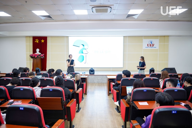 Trong phần chia sẻ của mình, chị Mai Thị Thúy Hồng đã giúp sinh viên Marketing UEF có cái nhìn rõ nét về công việc của người làm PR, bao gồm các lĩnh vực mà một chuyên viên quan hệ công chúng có thể phát triển, từ xây dựng hình ảnh thương hiệu đến quản lý khủng hoảng truyền thông.