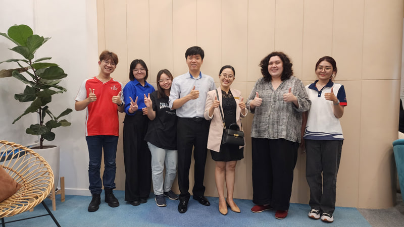 Bà Shareeda Morrison (thứ 2 từ phải sang), ThS. Ngô Thanh Phương Quỳnh - Phó trưởng khoa Marketing UEF (thứ 3 từ phải sang) cùng các bạn sinh viên Khoa Marketing tham gia cuộc thi Global Starup Hackathon trước đó