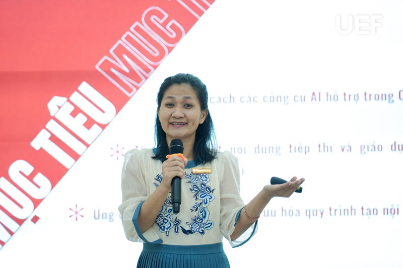 Ở buổi 2, TS. Nguyễn Quốc Minh giới thiệu qua các công cụ AI phổ biến, tiến hành phân tích chức năng của từng loại một. Quan trọng hơn là chia sẻ bí quyết đặt câu lệnh sao cho chuẩn để tiết kiệm thời gian và nhận được câu trả lời chuẩn xác nhất. Thầy cũng chỉ ra một số lỗi thường gặp khi đặt câu lệnh, đưa ra các ví dụ minh họa rõ ràng. Với phần chia sẻ của ThS. Võ Thị Kim Anh trong buổi thứ ba, người tham gia được học sâu hơn mảng tạo và phân phối nội dung trong lĩnh vực thể thao, các dạng nội dung có thể sử dụng AI để thực hiện.