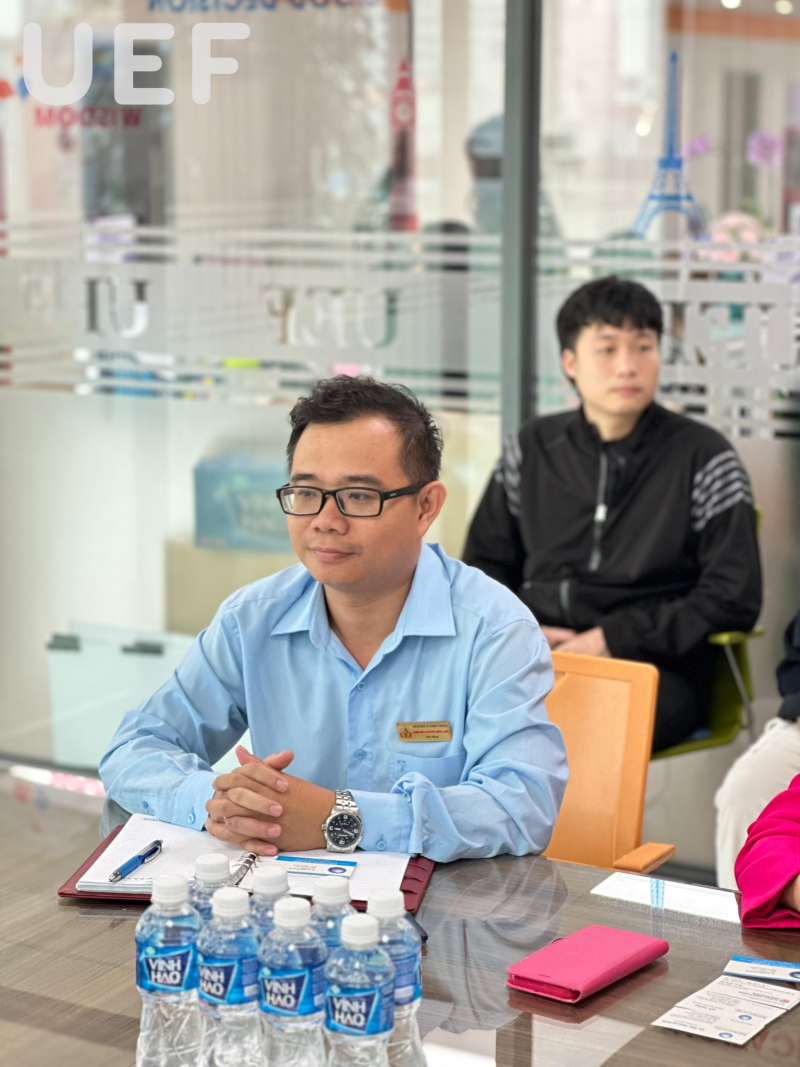 Về phía nhà UEF có sự tham gia đón tiếp và trao đổi của TS. Lý Thiên Trang - Phó Hiệu trưởng UEF, ThS. Nguyễn Huỳnh Sinh - Phó phòng Công tác Sinh viên, Th.S Huỳnh Tú Anh - Phó Trưởng Khoa Marketing (Khoa là đơn vị kết nối sự kiện về nhà UEF), cùng Th.S Phạm Thị Thùy Linh - Phó Trưởng Khoa Ngôn ngữ và Văn hóa Quốc tế kiêm Trưởng ngành Ngôn ngữ Hàn Quốc và Th.S Lê Hiếu Nghĩa - giảng viên Khoa Marketing phụ trách các công tác sự kiện, sinh viên Khoa, cùng các anh chị là thư ký Khoa Marketing.