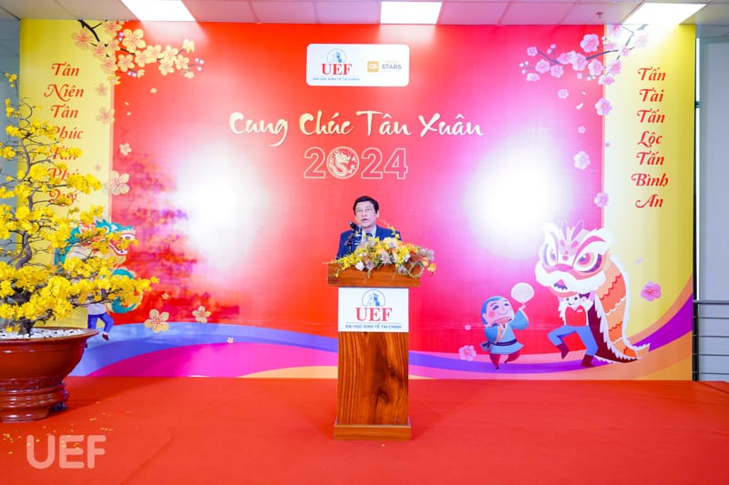 Bên cạnh đó, thầy đã điểm lại những bài thơ chúc Tết ý nghĩa của sinh viên và các đơn vị, đồng thời gửi lời chúc sức khỏe, bình an, hạnh phúc và thành công đến tất cả thành viên của đại gia đình UEF.