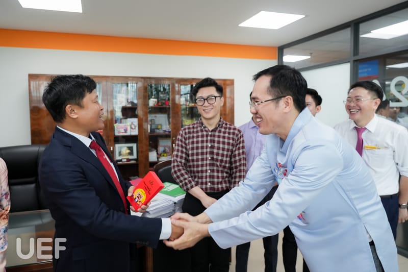 Với những thành tựu đã gặt hái trong năm vừa qua, đại diện lãnh đạo Nhà trường, thầy Đỗ Quốc Anh - Phó Chủ tịch Hội đồng trường đã cùng tập thể UEF nhìn lại những dấu ấn năm cũ và đặt mục tiêu cho năm mới. Nâng cao chất lượng đào tạo và đảm bảo hiệu quả các yếu tố từ hợp tác doanh nghiệp, chương trình quốc tế đến hoạt động sinh viên được thầy nhấn mạnh.