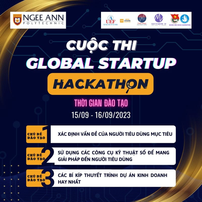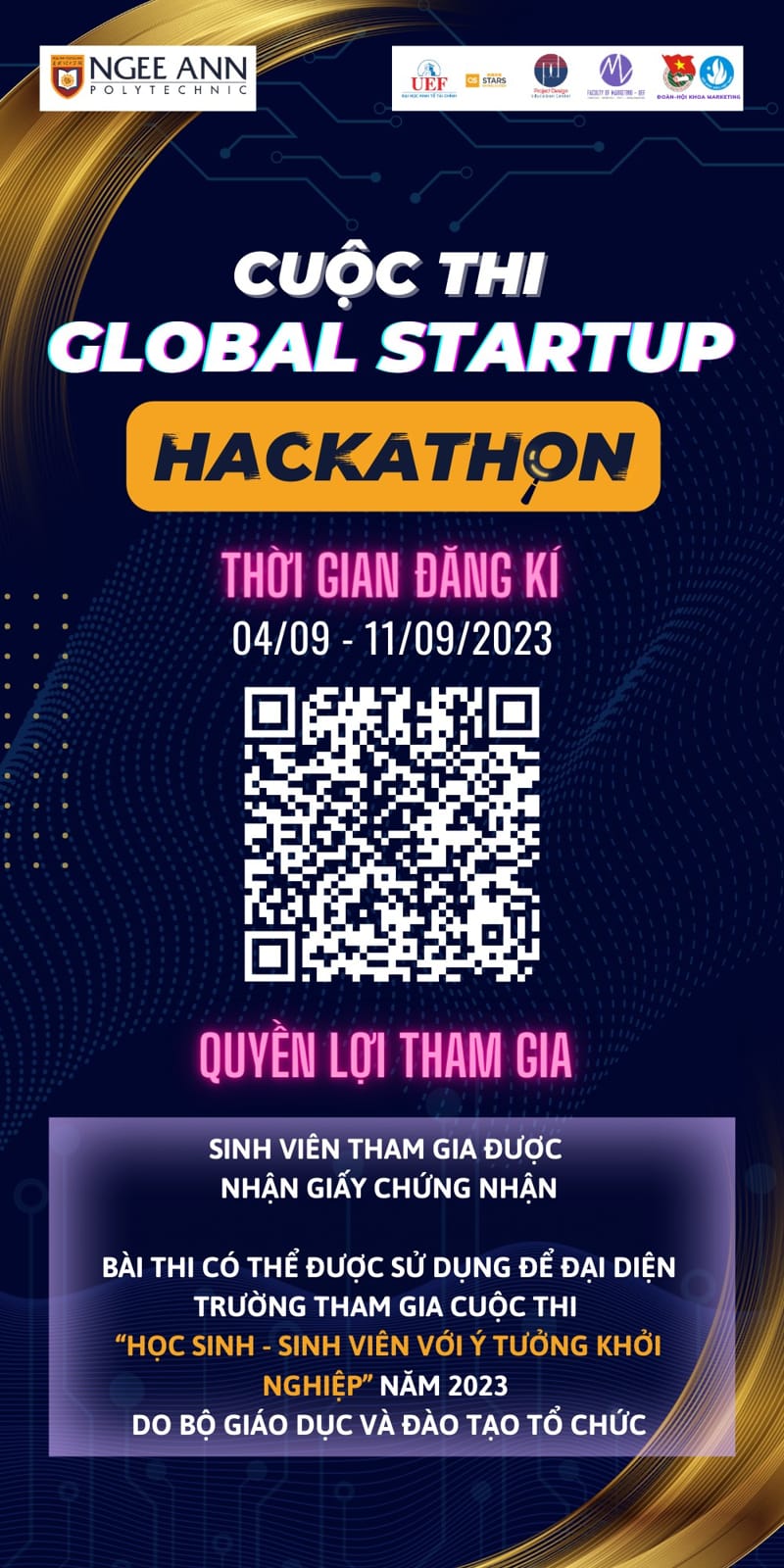 Global Startup Hackathon" do Khoa Marketing và Trung tâm Đào tạo thiết kế dự án thuộc đại học Kinh tế Tài chính TP.HCM (UEF) phối hợp cùng Ngee Ann Polytechnic (Singapore) tổ chức nhé!
