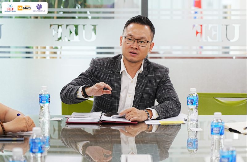 TS. Đỗ Hữu Nguyên Lộc – Phó Hiệu trưởng UEF chú ý lắng nghe phần trình bày của đối tác, đồng thời cũng trình bày một số định hướng trong kế hoạch phát triển các hoạt động quốc tế giữa nhà UEF và Ngee Ann Polytechnic (Singapore) trong tương lai
