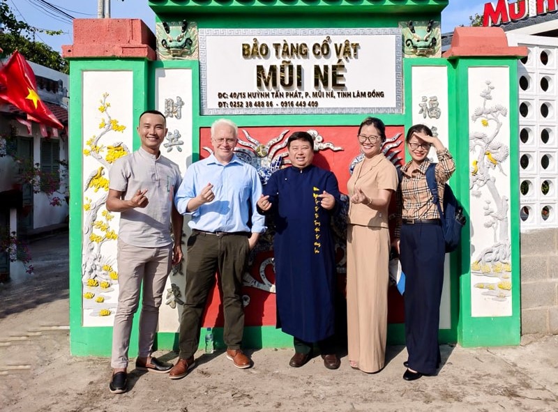 Đoàn khảo sát UEF có: TS. Phan Bảo Giang - Phó Hiệu trưởng, Trưởng khoa Marketing; GS.TS. Eric Jose Olmedo Panal - Viện trưởng Viện Quốc tế, Trưởng khoa Quản trị Du lịch - Khách sạn; ThS. Nguyễn Hồng Thạch - Giảng viên khoa Marketing, CEO Công ty Thạch Anh; ThS. Liên Kiến Quốc - Giảng viên khoa Marketing, CEO Công ty Hẻm Thú Cưng.