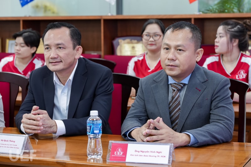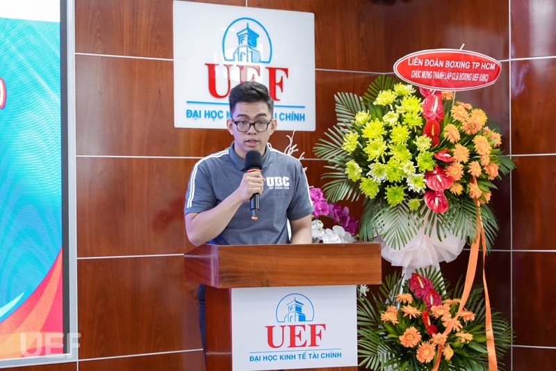 Phát biểu mở đầu buổi ký kết, TS. Đỗ Hữu Nguyên Lộc đã giới thiệu với đối tác về UEF, sứ mệnh giáo dục của Nhà trường cũng như những kỳ vọng sau “cái bắt tay” này. Thầy Lộc cũng cho biết “Boxing là một trong năm môn thể thao chính thức trong học phần Giáo dục thể chất tại UEF”.