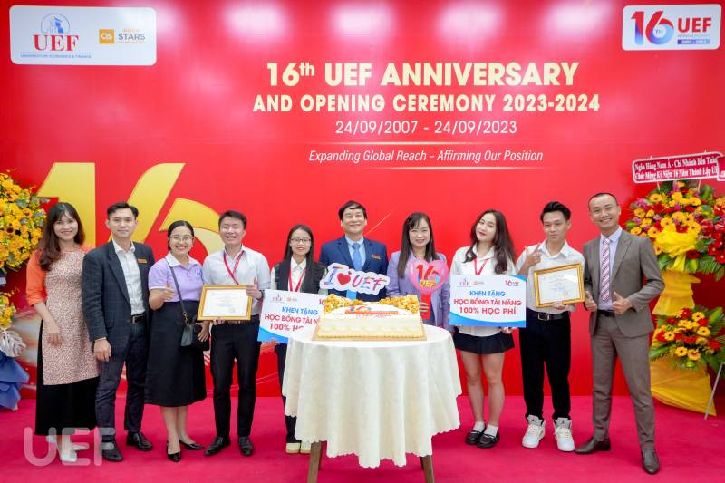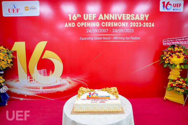 Sáng 23/9, Trường Đại học Kinh tế - Tài chính TP.HCM (UEF) đã long trọng tổ chức Lễ kỷ niệm 16 năm thành lập (24/9/2007 – 24/9/2023) và khai giảng năm học mới 2023-2024. Trong dấu mốc đặc biệt này, tập thể Nhà UEF cùng nhìn lại, cảm nhận và chúc mừng cho những thành quả đã đạt được, cũng như quyết tâm phấn đấu để hoàn thành mục tiêu lớn hơn trong năm học mới.