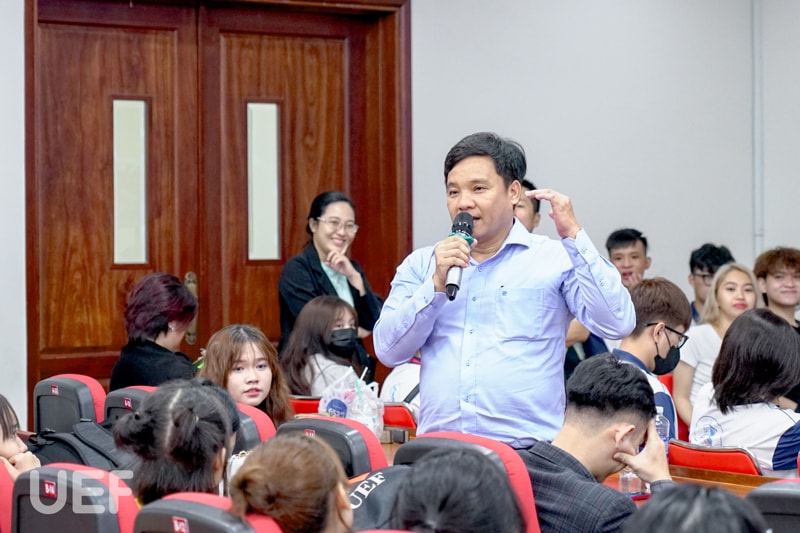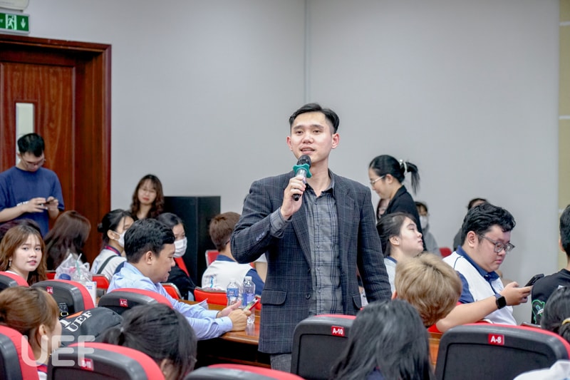 Sau phần truyền đạt kiến thức thực tế của diễn giả, nhiều bạn sinh viên đã đặt ra nhiều câu hỏi thắc mắc về marketing, sales và cách làm như thế nào cho phù hợp với môi trường số. Đặc biệt, ngoài câu trả lời của chuyên gia khách mời, hai giảng viên ngành Marketing cũng trực tiếp tham gia giải đáp thắc mắc là: ThS. Nguyễn Hồng Thạch và ThS. Lê Hiếu Nghĩa.