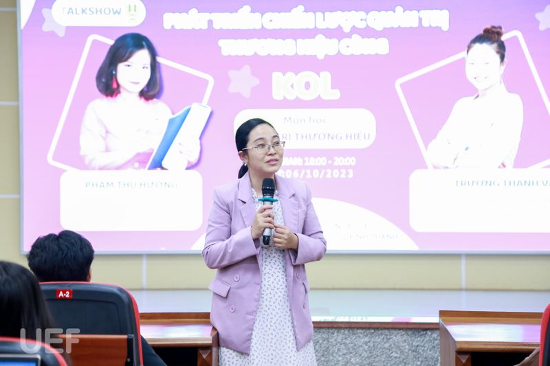 Nhằm bồi dưỡng thêm kiến thức thực tế liên quan đến các môn học cho sinh viên, Khoa Marketing đã lồng ghép thực tiễn vào môn học Quản trị thương hiệu bằng buổi talkshow đầy bổ ích với chủ đề: "Phát triển chiến lược quản trị thương hiệu cùng KOL" vào tối 6/10. Khách mời của chương trình là chị Phạm Thu Hường.
