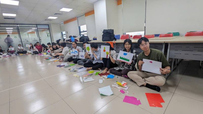 Thay vì không khí trầm lắng thường thấy, lớp học “Xây dựng Thương hiệu cá nhân” diễn ra vô cùng sôi nổi với các hoạt động tương tác trực quan. Đặc biệt, sự tham gia của hai sinh viên quốc tế đến từ Indonesia đã mang đến màu sắc đa văn hóa, tạo nên một không gian trao đổi cởi mở.