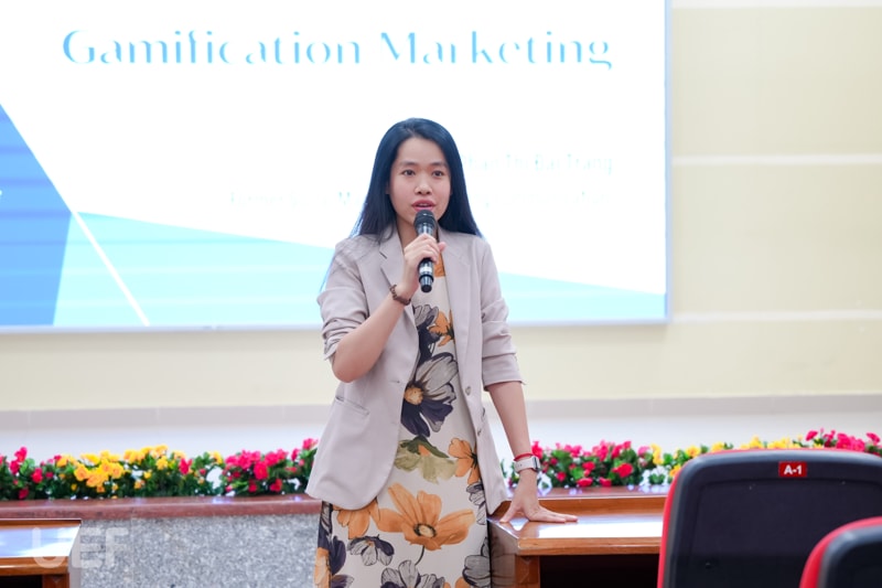 Xuyên suốt buổi talkshow "Gamification Marketing", sinh viên đã hiểu rõ về khái niệm cũng như tính ứng dụng của gamification trong marketing. Diễn giả đã giúp các bạn nhận biết và phân biệt 8 động lực cốt lõi thúc đẩy hành vi của khách hàng. Đồng thời, bà Đài Trang còn chia sẻ đến UEFers một số phương pháp phổ biến trong việc ứng dụng “game hóa” những ý tưởng hiện có để chúng trở nên hấp dẫn hơn.