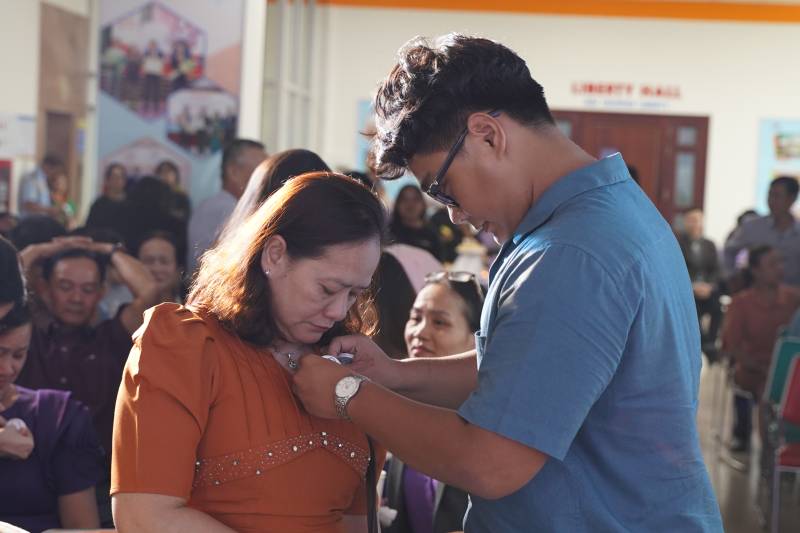 Khoảnh khắc tri ân, giữa không gian ấm áp của Lễ tri ân, những trái tim được đính lên ngực áo của phụ huynh như lời cảm ơn từ tận trái tim của các tân cử nhân. Đó là sự tri ân sâu sắc dành cho những bậc sinh thành đã đồng hành, vun trồng và ươm mầm cho con đường trưởng thành của mỗi cá nhân. Mỗi trái tim là một lời cảm ơn, một lời hứa sẽ tiếp tục cố gắng, phấn đấu để không phụ lòng mong đợi của cha mẹ. Nhiều cung bậc cảm xúc của phụ huynh, ánh mắt rưng rưng, cử chỉ vụng về như những đứa trẻ thơ của các tân cử nhân ngày nào mới là tân sinh viên được ba mẹ đưa đến mái trường UEF, tất cả đã tạo nên một khung cảnh ấm áp, đầy tình cảm và lắng đọng. Đó là khoảnh khắc đẹp đẽ, ghi dấu một chặng đường đã qua và mở ra một tương lai đầy hứa hẹn phía trước.