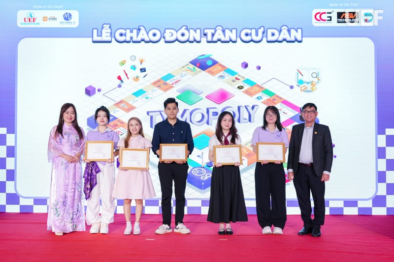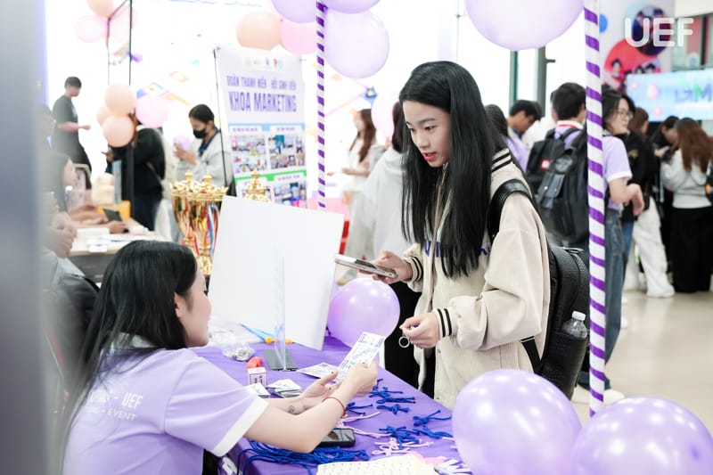 Sáng cùng ngày, tân cư dân cũng đã “hội ngộ” về thành phố Tymopoly để tham quan các gian hàng từ doanh nghiệp, câu lạc bộ, Đoàn - Hội khoa Marketing. Hoạt động này giúp các bạn nhanh chóng hòa nhập vào môi trường mới đầy màu sắc, sôi động và đó cũng là “hệ sinh thái” đồng hành xuyên suốt trong hành trình đại học rực rỡ sắp tới của các bạn. Nghi thức trao cờ thay cho lời chào đầy thân thương đến tân sinh viên của “Nhà Tým”, chúc các bạn có một cuộc phiêu lưu tại thành phố Tymopoly và Nhà UEF đầy thú vị và ý nghĩa.