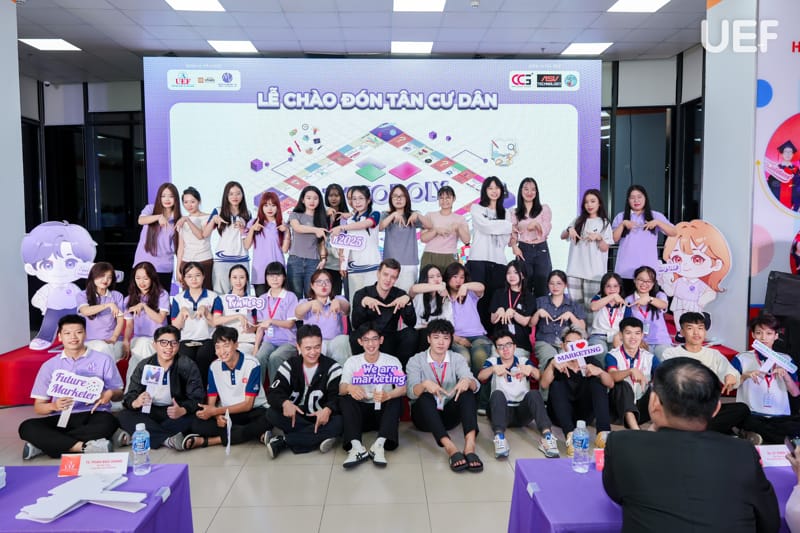 Đại diện Ban lãnh đạo UEF, Ban Chủ nhiệm và tập thể giảng viên Khoa Marketing cùng các khách mời "ra mắt" trước tân sinh viên