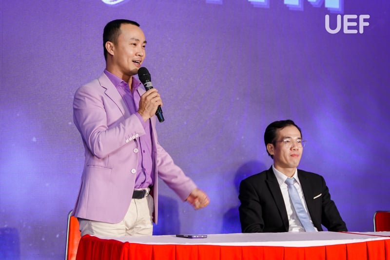 Bên cạnh đó, thầy cũng nhấn mạnh về sự phát triển ấn tượng của Khoa Marketing trong thời gian qua. Được thành lập vào năm 2022, chỉ sau hơn 2 năm hoạt động, Khoa đã có những bước tiến vượt bậc, vươn lên đứng trong hàng ngũ những khoa có số lượng tân sinh viên nhập học nhiều nhất tại Nhà UEF. Đội ngũ giảng viên và nhân viên đã tăng từ 8 lên gần 30 người, phản ánh nỗ lực không ngừng trong việc nâng cao chất lượng đào tạo và hỗ trợ sinh viên. Sự phát triển này không chỉ khẳng định vị thế của Khoa mà còn mở ra nhiều cơ hội học tập và phát triển cho các bạn sinh viên trong tương lai.