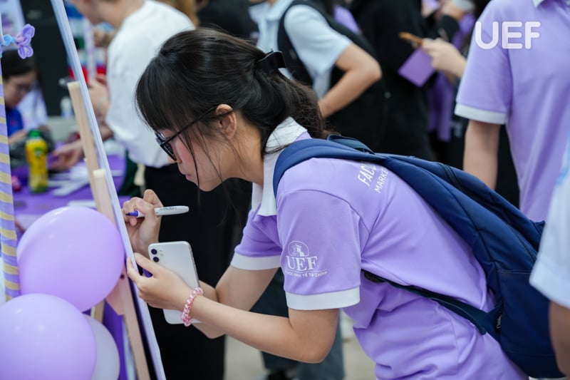 Cạnh đó, các bạn sinh viên còn được giao lưu và lắng nghe chia sẻ từ doanh nghiệp, cựu sinh viên. Những lời khích lệ, nhắn nhủ từ các “tiền bối” đã góp phần tiếp thêm động lực cho tân sinh viên bước vào hành trình mới, chinh phục tri thức và trở thành “thiên tài" của chính mình.