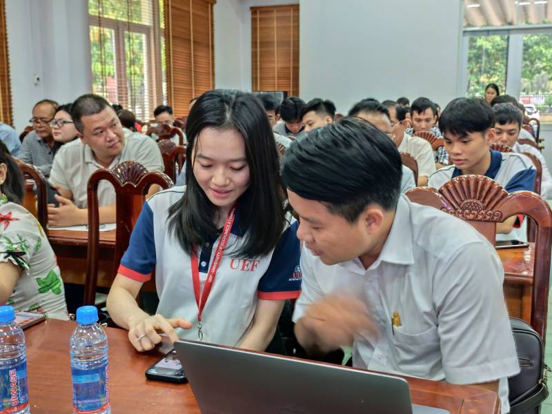 Các bạn sinh viên Khoa Marketing UEF tham gia hỗ trợ tập huấn tại chương trình