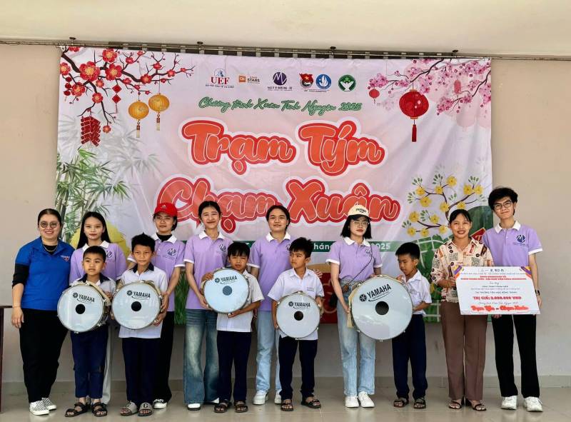 Bên cạnh đó, bộ trống nghi thức đã được trao tặng đến trường Tiểu học Bông Trang như một phần quà đặc biệt trong không khí rộn ràng của chương trình. Món quà này không chỉ mang đến niềm vui, mà còn khơi dậy sự hứng khởi, góp phần làm cho các hoạt động học tập và lễ hội sắp tới của các em thêm phần sinh động và ý nghĩa.