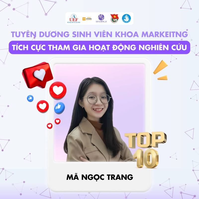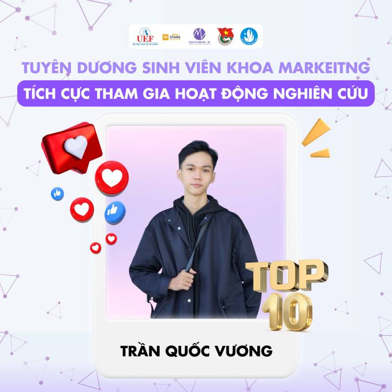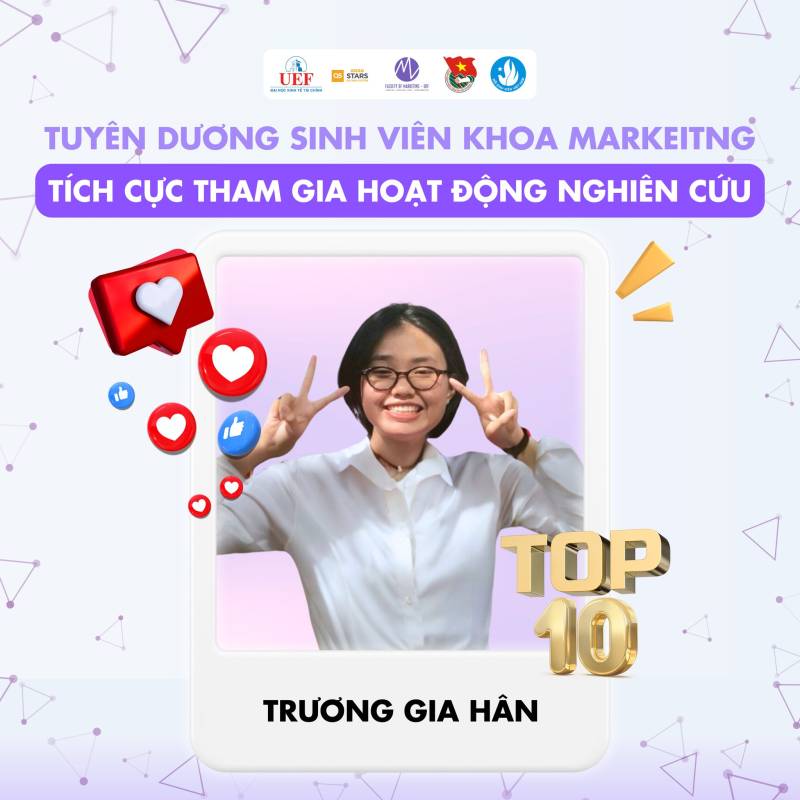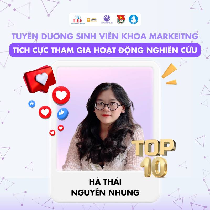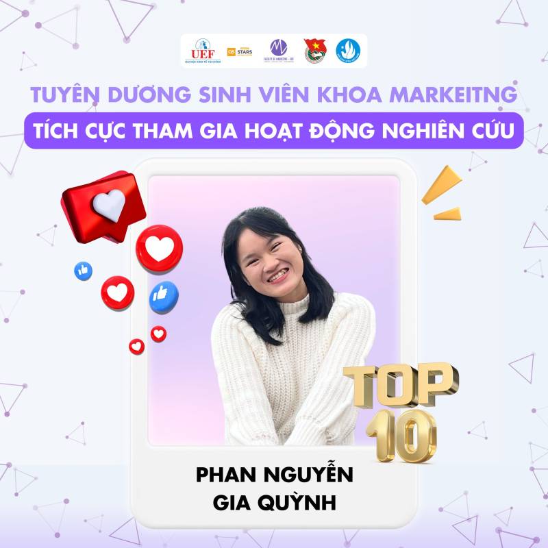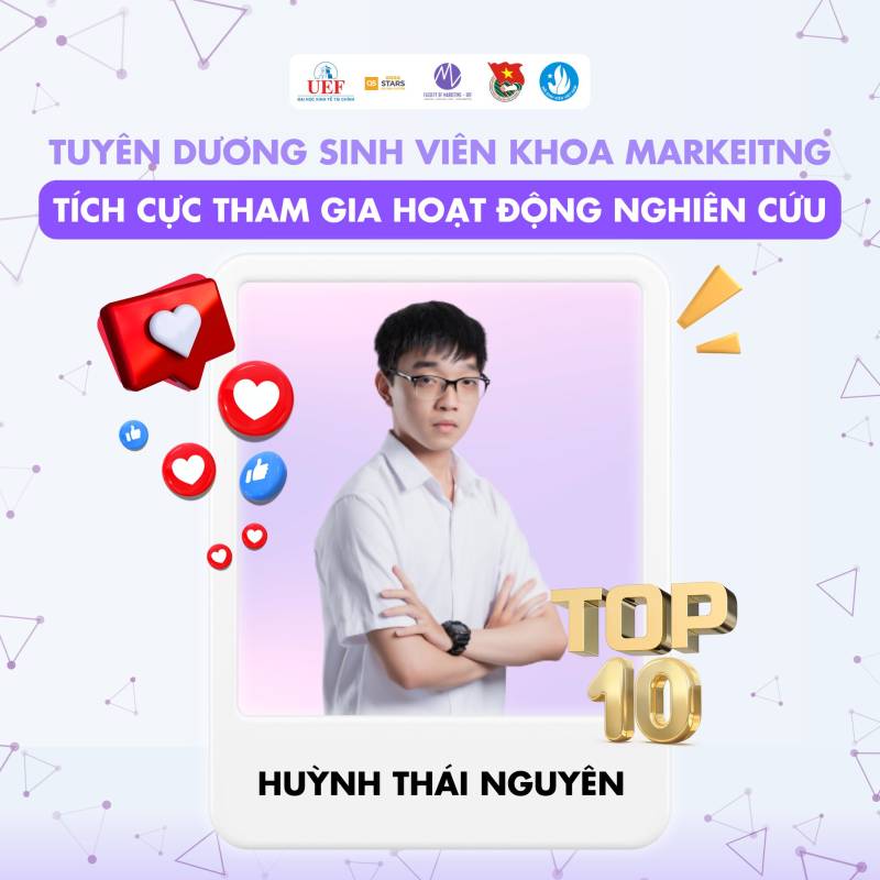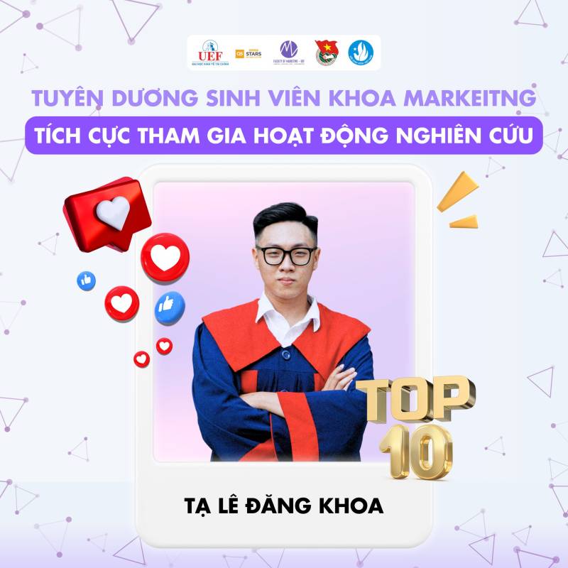 Nhiều thế hệ sinh viên Việt Nam đã và đang miệt mài nghiên cứu, gặt hái được nhiều thành tựu đáng tự hào trên các lĩnh vực khoa học, kỹ thuật, góp phần giải quyết những vấn đề thực tiễn của xã hội. Những công trình nghiên cứu xuất sắc của sinh viên đã được công bố trên các tạp chí khoa học uy tín trong và ngoài nước, mang lại niềm vinh dự cho bản thân, gia đình và nhà trường. Tại Khoa Marketig cũng vậy, chúng tôi tự hào khi các bạn sinh viên đã và đang tiếp bước con đường học thuật hết sức khó khăn nhưng đầy vinh quang này. Chúc các bạn sinh viên sẽ ngày càng phát triển hơn nữa trong con đường nghiên cứu khoa học của bản thân mình. Tự hào sinh viên UEF!