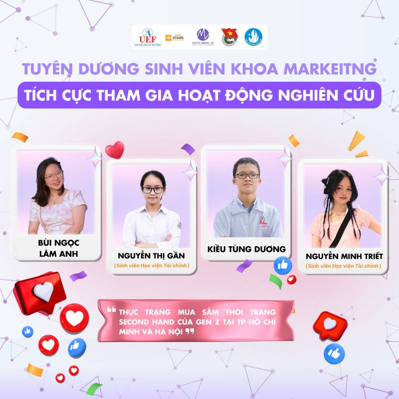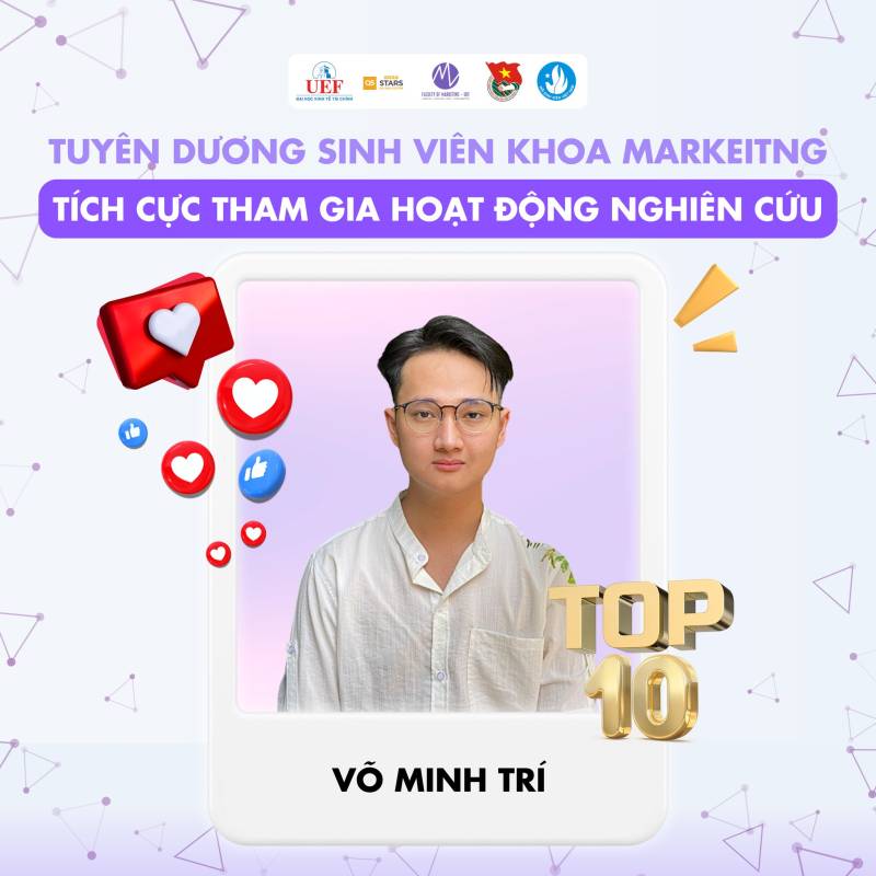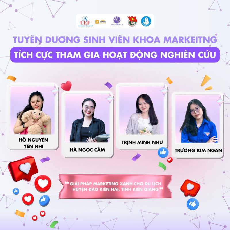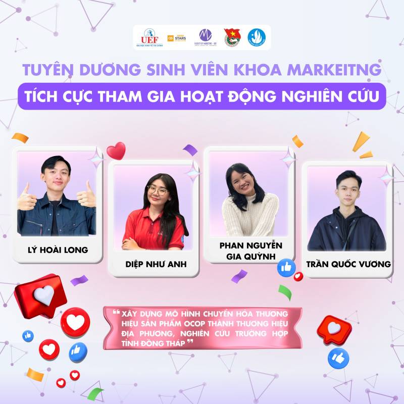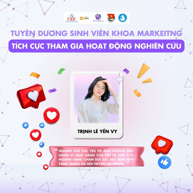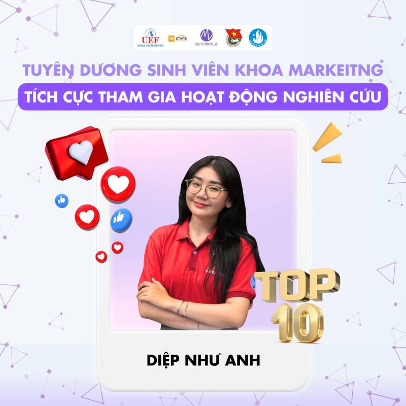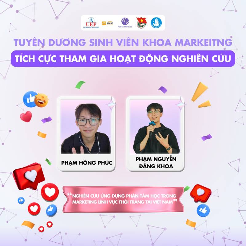 Nhiều thế hệ sinh viên Việt Nam đã và đang miệt mài nghiên cứu, gặt hái được nhiều thành tựu đáng tự hào trên các lĩnh vực khoa học, kỹ thuật, góp phần giải quyết những vấn đề thực tiễn của xã hội. Những công trình nghiên cứu xuất sắc của sinh viên đã được công bố trên các tạp chí khoa học uy tín trong và ngoài nước, mang lại niềm vinh dự cho bản thân, gia đình và nhà trường. Tại Khoa Marketig cũng vậy, chúng tôi tự hào khi các bạn sinh viên đã và đang tiếp bước con đường học thuật hết sức khó khăn nhưng đầy vinh quang này. Chúc các bạn sinh viên sẽ ngày càng phát triển hơn nữa trong con đường nghiên cứu khoa học của bản thân mình. Tự hào sinh viên UEF!