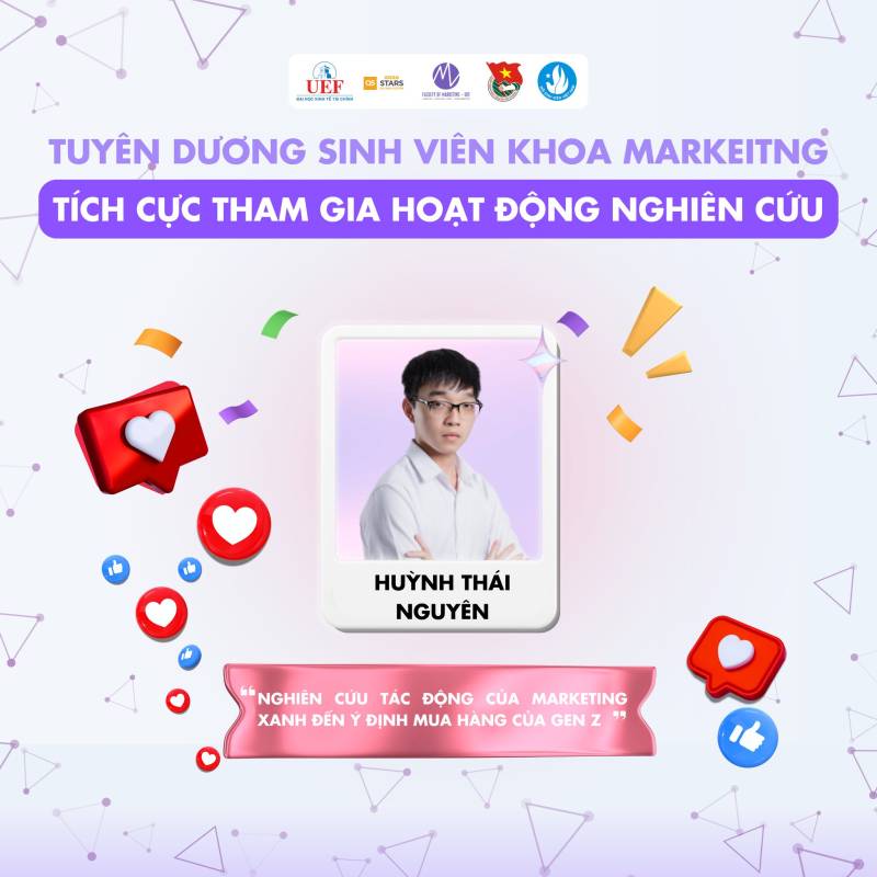 Giải ba: Thuộc về bạn Huỳnh Thái Nguyên. Với đề tài “Nghiên cứu tác động của Marketing xanh đến ý định mua hàng của Gen Z”