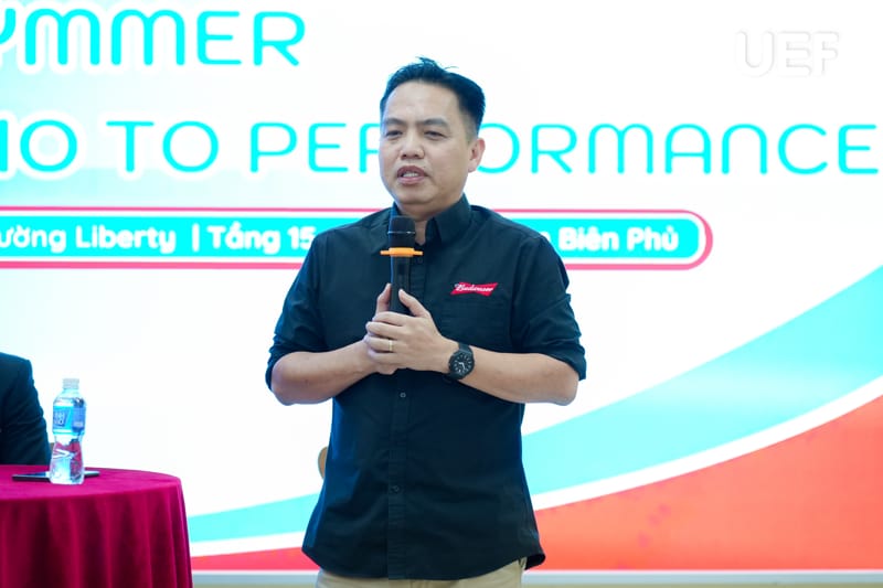 Diễn giả của workshop có anh Bùi Phạm Duyệt - Việt Nam Sales Director, Anheuser-Busch InBev (AB InBev); anh Hoàng Bá Minh - Business Development Manager, OnPoint Company Limited, cựu sinh viên UEF.