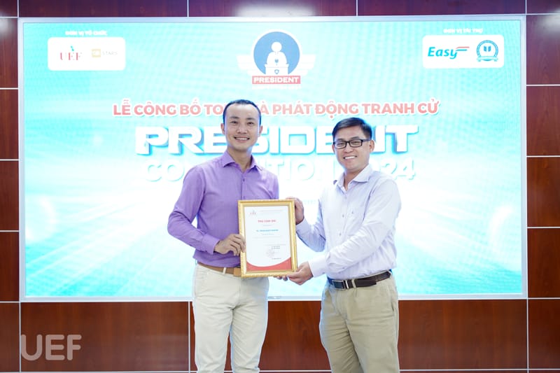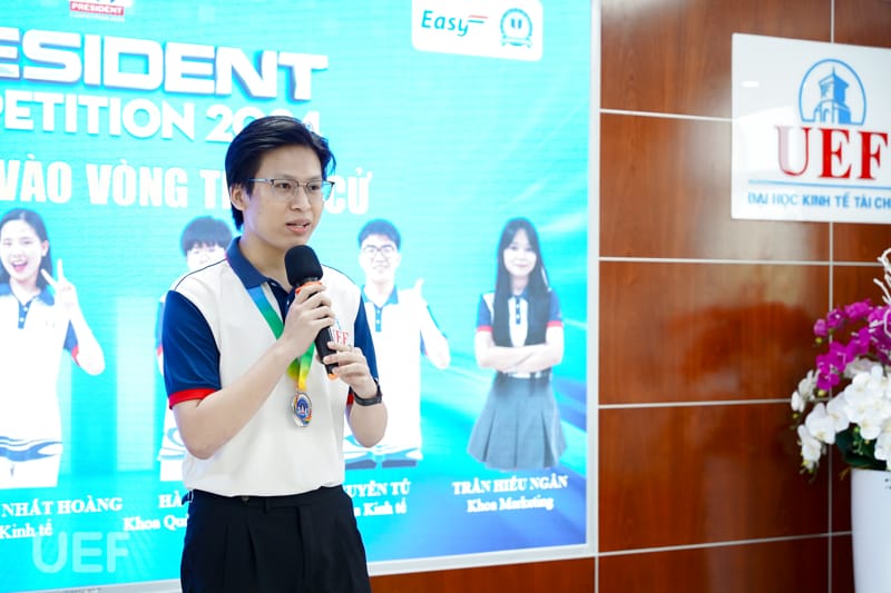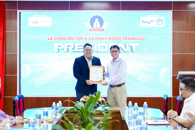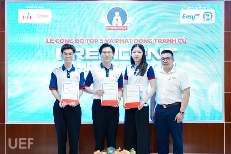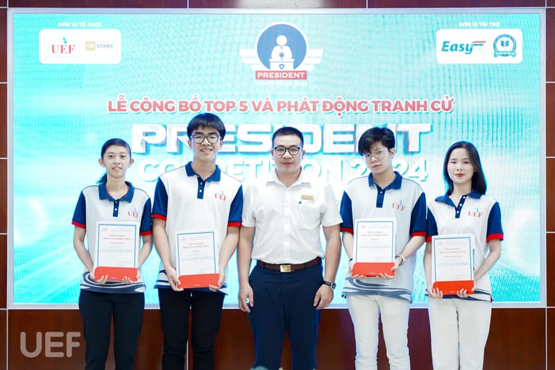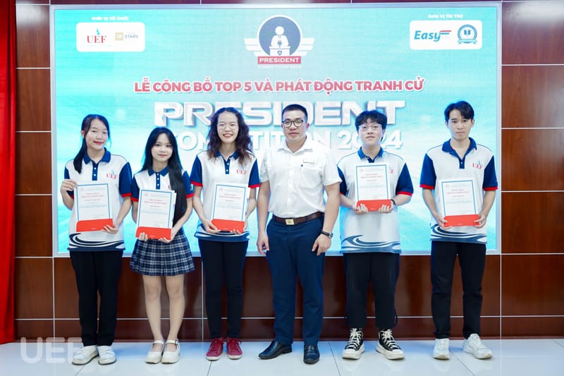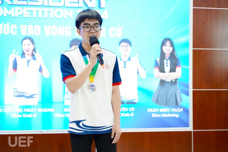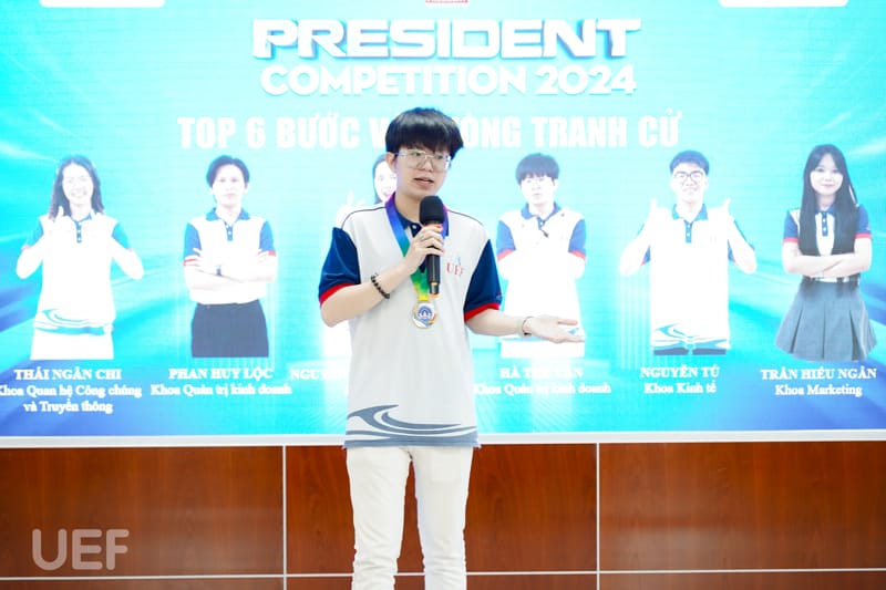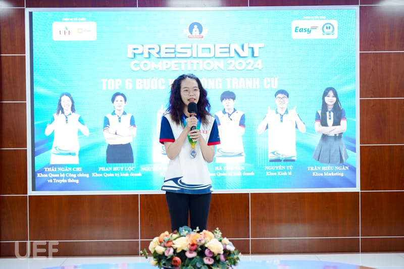 Trải qua 4 tháng thi đấu với những phần tranh tài đặc sắc mang đến cơ hội học tập, trải nghiệm cho sinh viên, hành trình UEF President Competition 2024 đã đi đến những chặng cuối. Kết thúc vòng Thực chiến, vào ngày 8/4, 14 thí sinh xuất sắc nhất đã tham gia Lễ công bố top 6 và phát động tranh cử do Phòng Công tác sinh viên tổ chức. Tại buổi lễ, sau quá trình tổng kết các hoạt động vừa qua, 6 cái tên sẽ bước vào vòng Tranh cử và viết tiếp ước mơ trở thành tân thủ lĩnh sinh viên của Nhà UEF cũng đã được công bố.