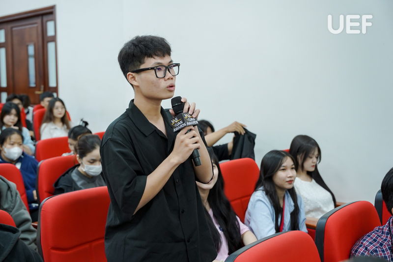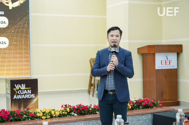 Trong phần chia sẻ tổng quan về giải thưởng, ông Nguyễn Đức Khánh đã làm rõ các yếu tố về thể lệ dự thi, đối tượng tham gia cũng như cơ cấu giải thưởng cho các hạng mục. Ông nhấn mạnh thêm, đây là cơ hội để sinh viên UEF gặp gỡ các chuyên gia, lắng nghe chia sẻ và học hỏi kinh nghiệp, góp thêm kiến thức vào hành trang hội nhập tương lai. Sân chơi còn là chiếc cầu nối vững chắc cho các tài năng trẻ năng động, sáng tạo được giao lưu và học hỏi lẫn nhau.