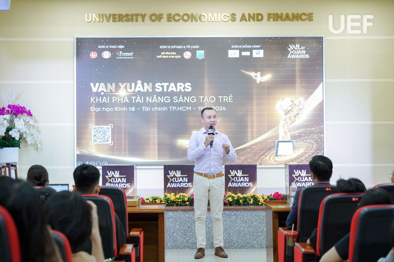 Chiều ngày 19/10, tại UEF đã diễn ra chuỗi hoạt động đặc biệt dành cho các bạn đam mê quảng cáo sáng tạo. Sự kiện nằm trong khuôn khổ chương trình Vạn Xuân Stars: Unitour khai phá tài năng sáng tạo trẻ được phối hợp thực hiện bởi Khoa Marketing và ban tổ chức Vạn Xuân Awards.
