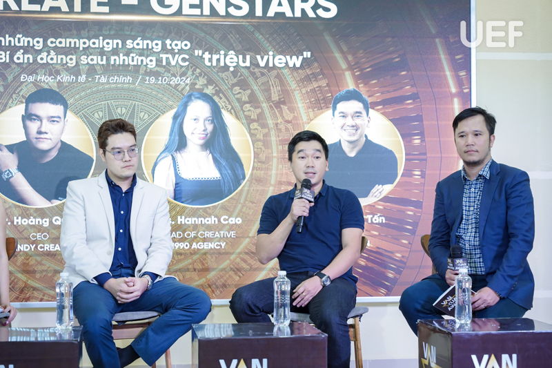 Bốn vị diễn giả giàu kinh nghiệm góp mặt trong workshop GenCreate - GenStar đã mang đến nhiều câu chuyện thú vị trong thế giới quảng cáo. Điều này đã kích thích sự tò mò, mong muốn được khám phá và học hỏi của UEFers, đặc biệt là các bạn đang theo đuổi chuyên ngành quảng cáo.