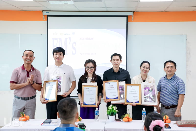 Đại diện UEF và Khoa Marketing trao thư cảm ơn đến các diễn giả trong chương trình