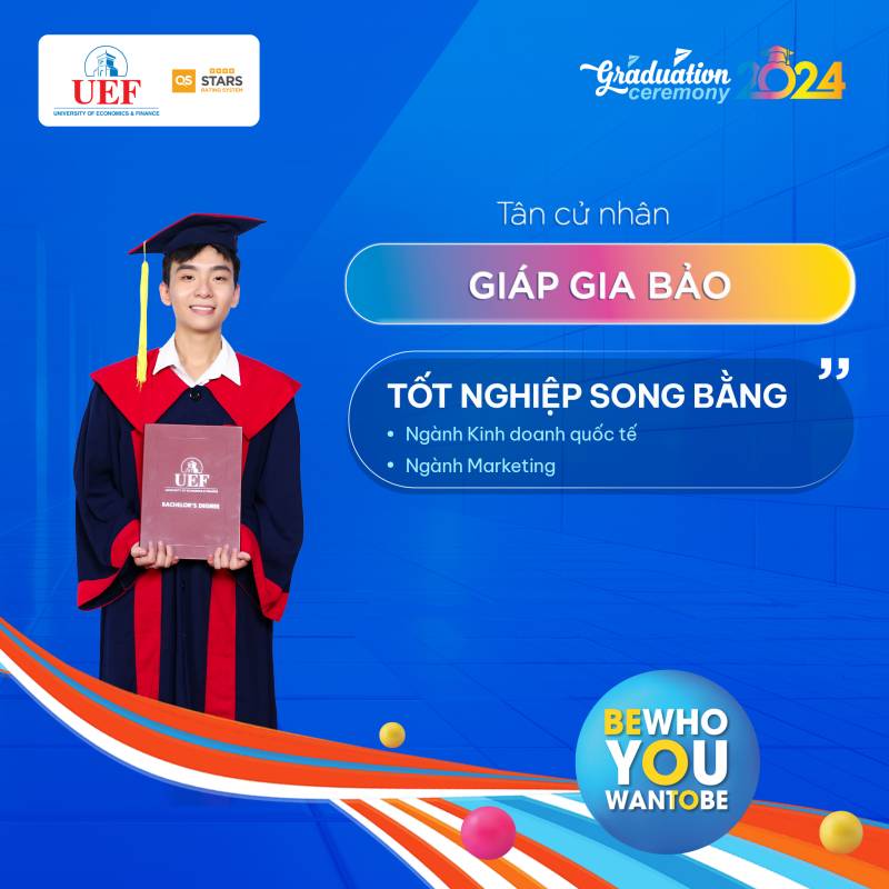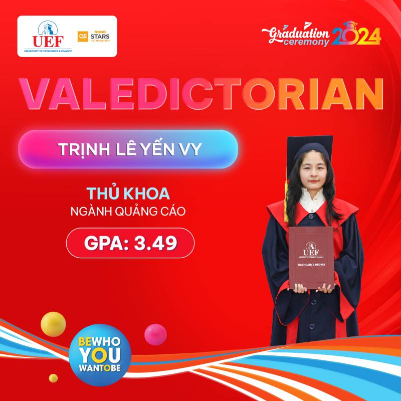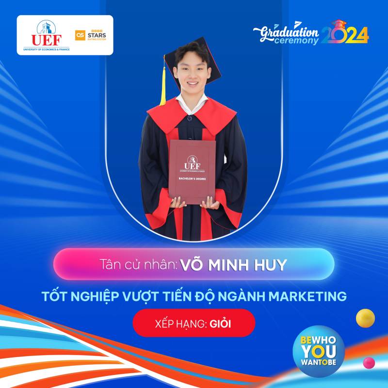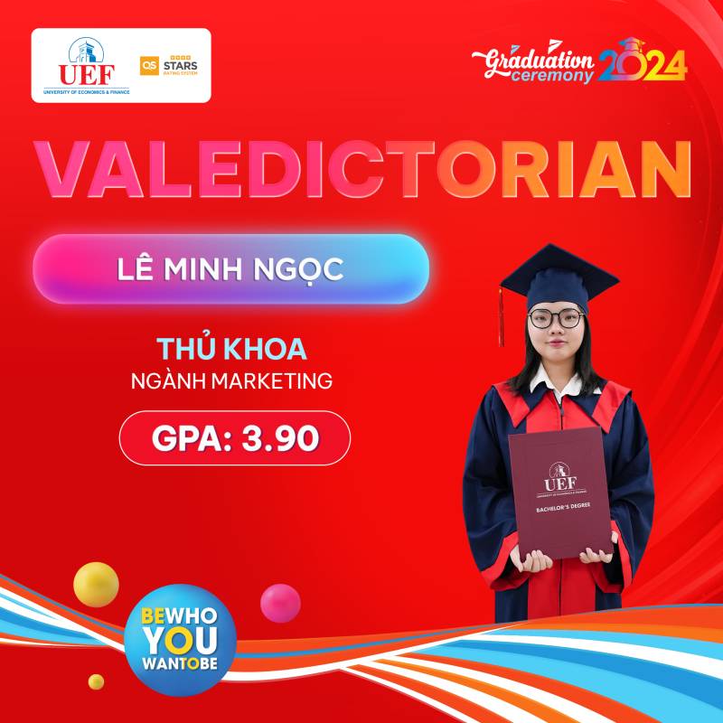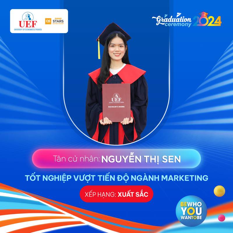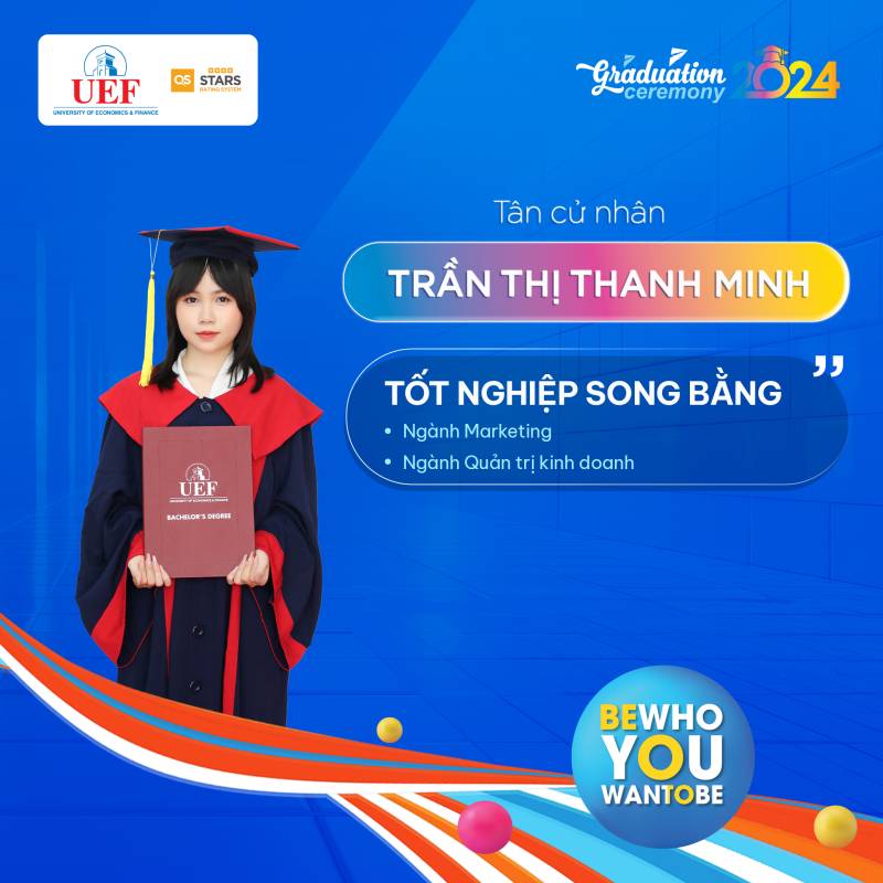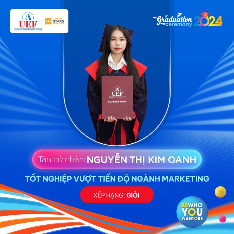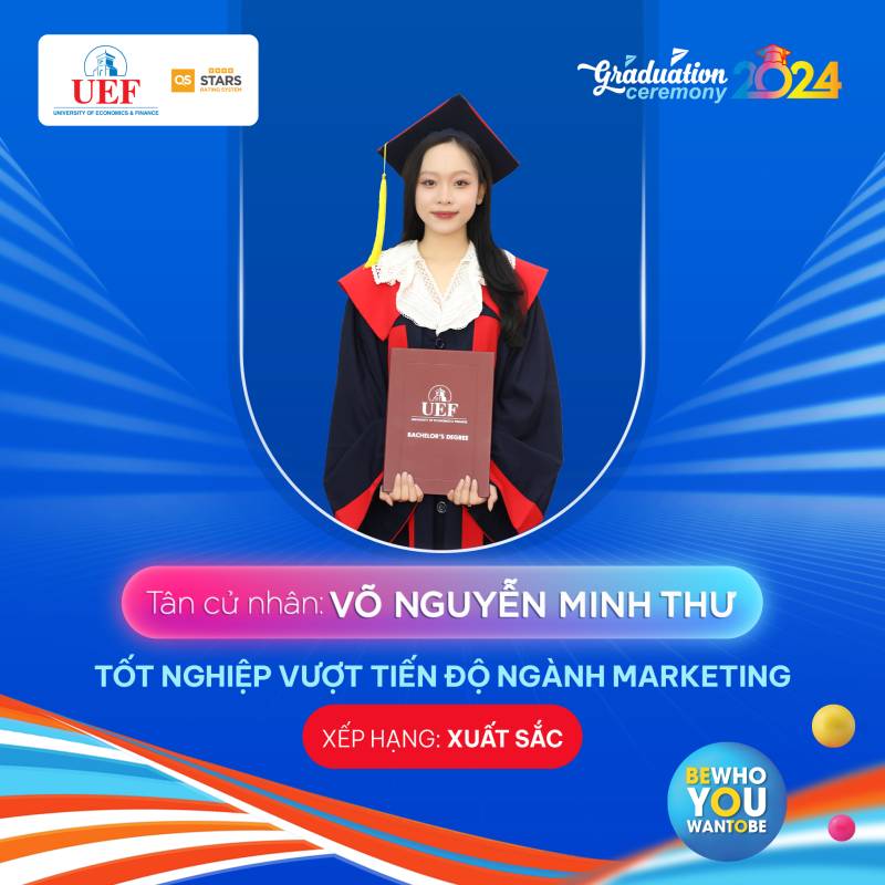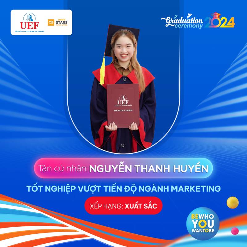 Các bạn đã toả sáng trong suốt chặng đường dài vừa qua, bây giờ chính là lúc chúng ta hãy tận hưởng những thành quả đó và chuẩn bị cho những hành trình rực rỡ phía trước. Khoa Marketing UEF tự hào khi có những thành viên xuất sắc như các bạn và chúc cho tất cả các bạn sẽ luôn vững chí học tâp, ngày càng thành công hơn nữa trong bước đường sự nghiệp của bản thân mình. Còn bây giờ hãy cùng Khoa Marketing UEF điểm qua danh sách các cá nhân xuất sắc trong đợt tốt nghiệp năm học 2023 - 2024 tại Trường Đại học Kinh tế Tài chính Thành phố Hồ Chí Minh (UEF)