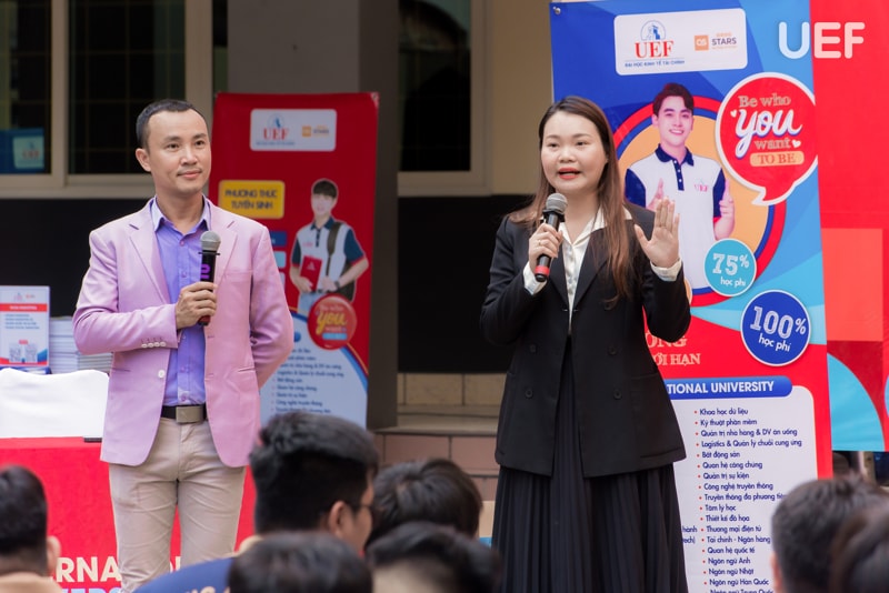 Bên cạnh đó, tại chương trình, các bạn đã được gặp gỡ, giao lưu và lắng nghe phần giới thiệu đến từ đại diện các khoa đào tạo của UEF, bao gồm: Khoa Công nghệ thông tin, Khoa Tài chính - Kế toán, Khoa Tiếng Anh, Khoa Kinh tế, Khoa Quản trị kinh doanh.