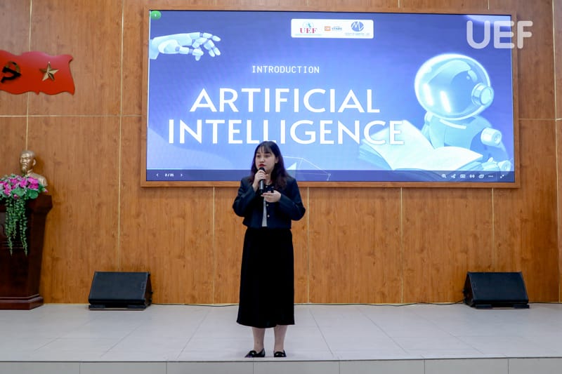 Đại diện UEF cũng chia sẻ thêm về chủ trương quốc gia trong việc phát triển AI đến năm 2030, nhấn mạnh vai trò của học sinh, sinh viên trong tương lai khi Việt Nam hướng đến trở thành trung tâm đổi mới sáng tạo của khu vực.