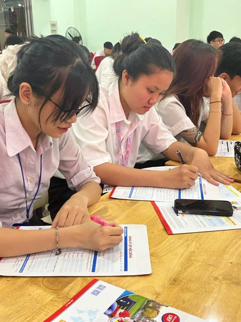 Buổi tư vấn khép lại trong không khí ấm áp, đầy cảm hứng với hoạt động chụp hình lưu niệm và tư vấn chuyên sâu tại khu vực bàn thông tin của UEF. Tại đây, các em học sinh tiếp tục nhận được sự hỗ trợ tận tình từ các chuyên viên, giúp định hình rõ nét hơn những bước đi sắp tới. Sự kiện không chỉ là một dấu mốc đáng nhớ mà còn khẳng định vai trò đồng hành của UEF và Trung tâm trong việc xây dựng một thế hệ trẻ Việt Nam vừa khỏe mạnh về thể chất, vừa vững vàng về tri thức.