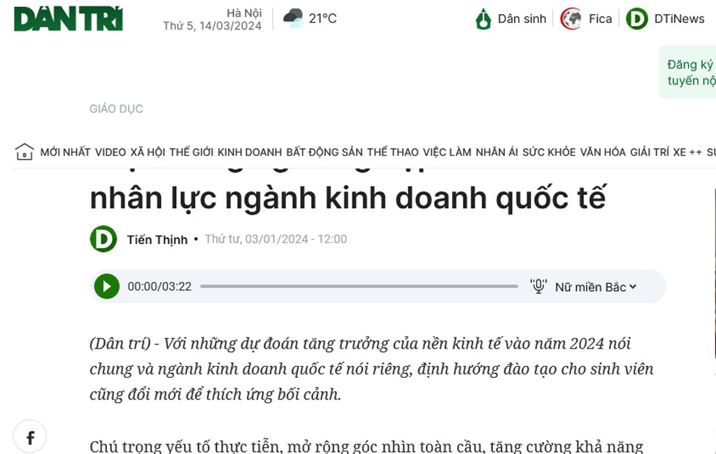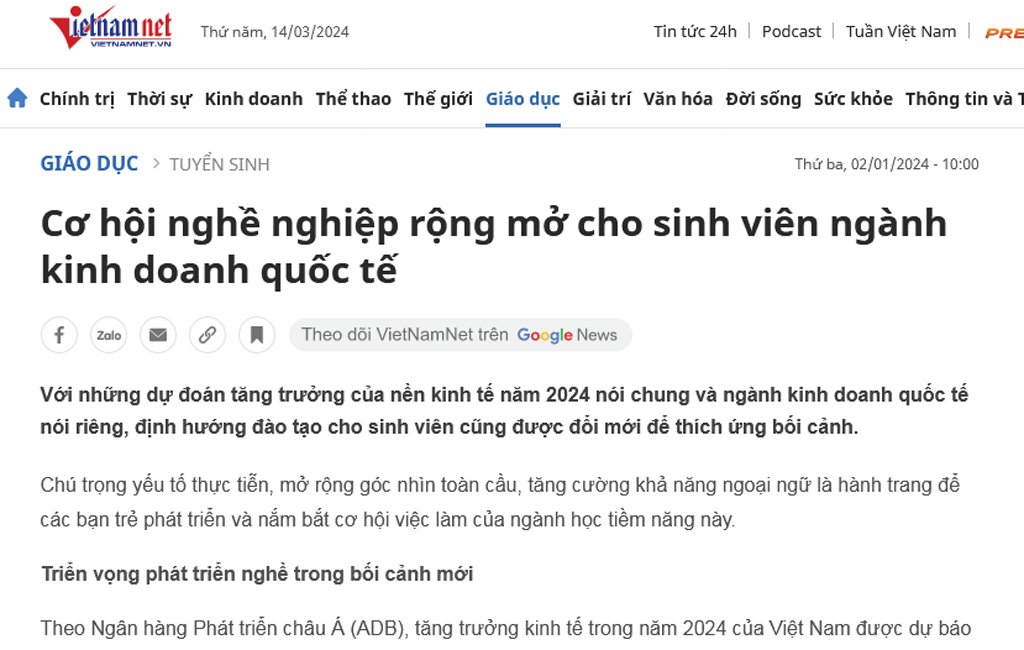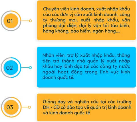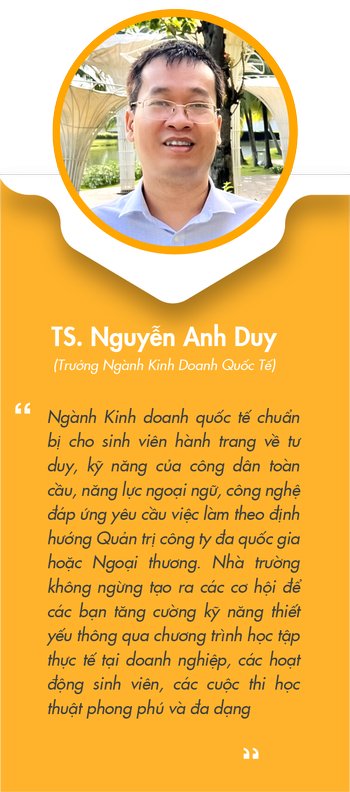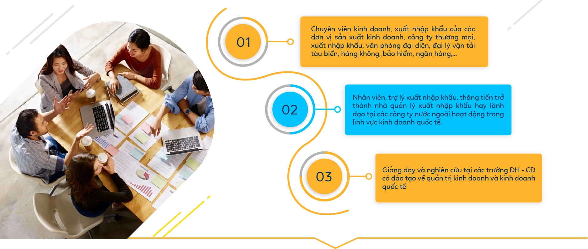Ngành Kinh doanh quốc tế cung cấp kiến thức chuyên sâu về kinh doanh xuất nhập khẩu và kinh doanh quốc tế, về tổ chức và quản lý hoạt động kinh doanh quốc tế, công ty đa quốc gia tương thích với xu thế hội nhập quốc tế.
