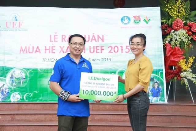 Đại diện ban chỉ huy chiến dịch nhận tài trợ từ công ty LEDsaigon