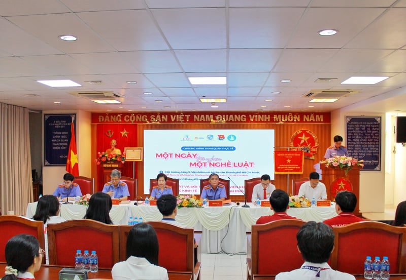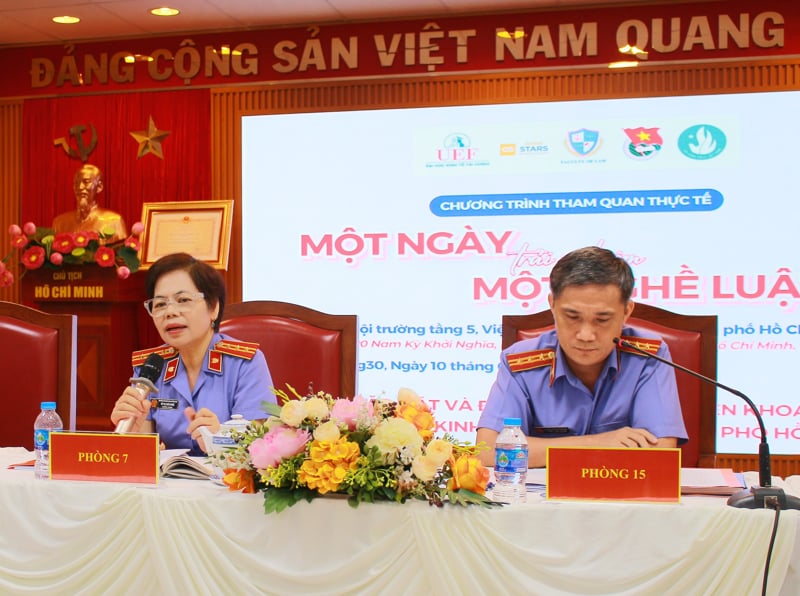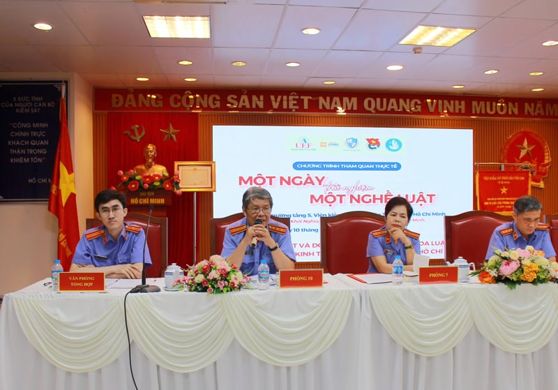 Tại đây, sinh viên được nghe giới thiệu về Viện kiểm sát nhân dân TP.HCM để hiểu hơn về lịch sử, quá trình phát triển và các hoạt động chính tại đơn vị này. Ngay sau đó, đoàn sinh viên tiếp tục được các đồng chí lãnh đạo đơn vị cung cấp những kiến thức khái quát về VKSND nói chung và nghề Kiểm sát viên nói riêng. Cụ thể, VKSND thực hiện quyền công tố, kiểm sát hoạt động tư pháp, giải quyết nhiều vụ việc hàng năm. Bên cạnh đó, buổi tọa đàm còn chia sẻ về cơ hội nghề nghiệp cho sinh viên.