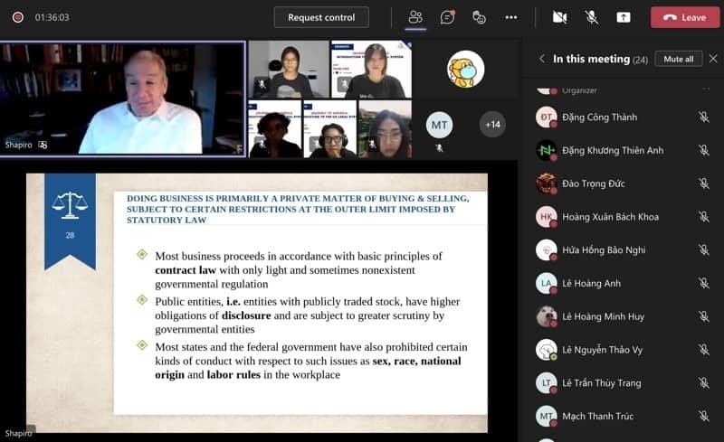 Luật sư, Giáo sư Robert E. Shapiro đã chia sẻ những kiến thức hữu ích về hệ thống luật pháp Mỹ