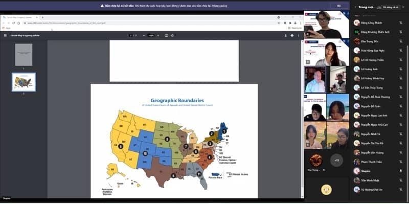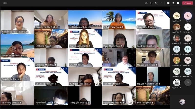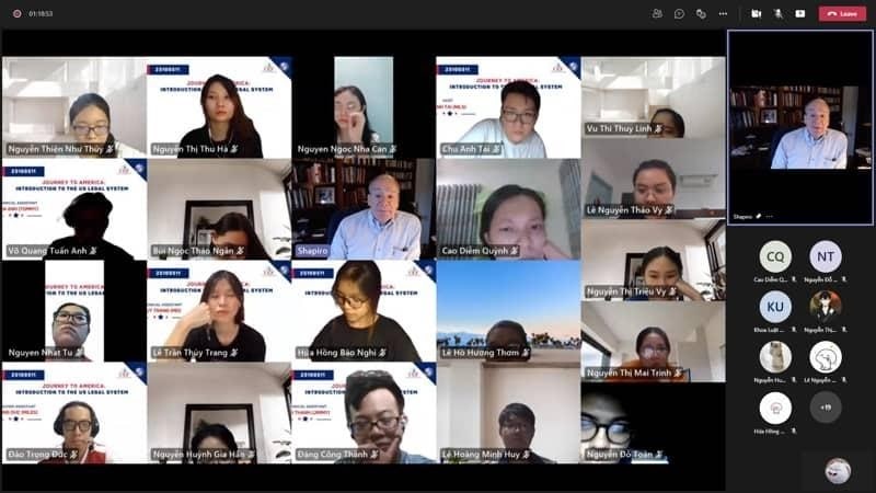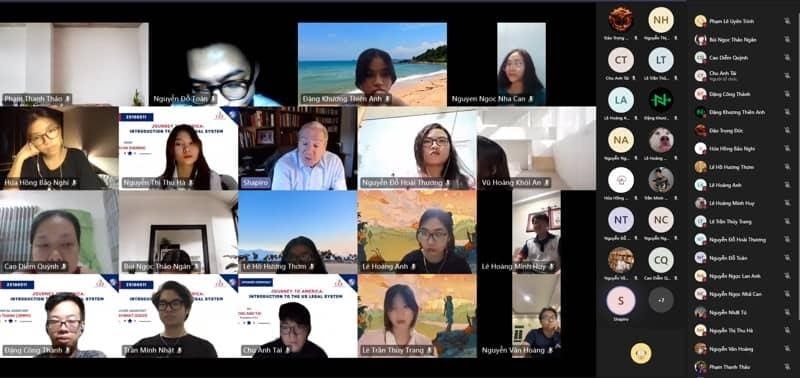 Theo chương trình của khóa học, các bạn sinh viên đã được trang bị nhiều thông tin mới mẻ ứng với từng chủ đề cụ thể. Theo đó, chủ đề đầu tiên là "Nền tảng của luật pháp Mỹ" (ngày 27/10), chủ đề 2 là "Hệ thống pháp luật của Mỹ" (ngày 29/10), chủ đề 3 là "Hệ thống tòa án ở Mỹ" (1/11), chủ đề 4 là "Luật cá nhân và luật thương mại" (ngày 3/11) và chủ đề cuối cùng là "Tìm hiểu về tố tụng dân sự trong thực tế ở Mỹ" (ngày 5/11).