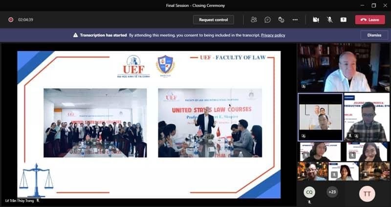 Từ ngày 27/10 đến 5/11, khoa Luật và câu lạc bộ Integrity Law (ILC) đã phối hợp tổ chức khóa học về Luật pháp Mỹ mang tên "Journey to America: Introduction To The US Legal System" do Giáo sư - Luật sư Robert E. Shapiro giảng dạy. Sau 5 buổi học, sinh viên UEF nói chung và sinh viên nhóm ngành Luật nói riêng đã có cơ hội mở rộng kiến thức, góc nhìn về luật pháp trên thế giới.