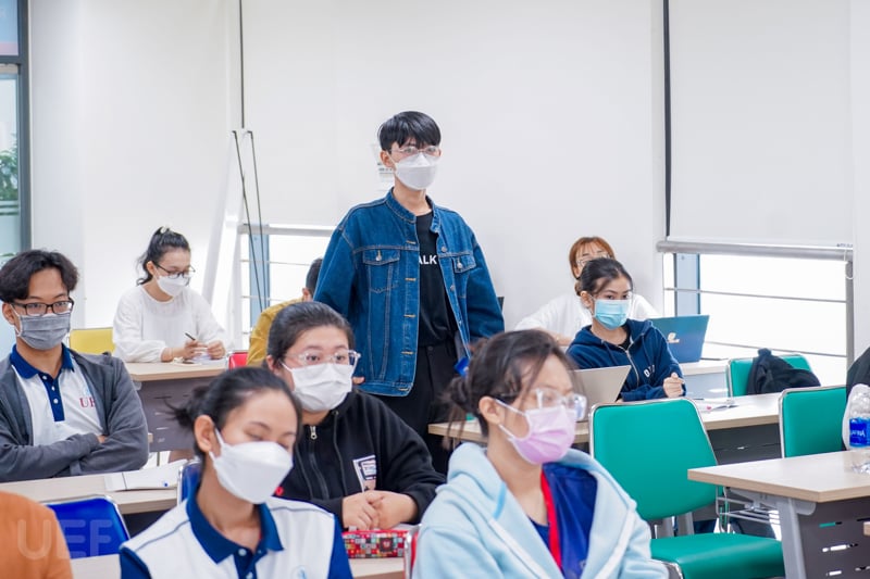 Với hình thức trao đổi, giao lưu trực tiếp “sinh viên hỏi - diễn giả trả lời”, UEFers đã được giải đáp nhiều thắc mắc về việc học tiếng Anh sao cho hiệu quả, về chứng chỉ, giáo trình học IELTS, các bí quyết học tiếng Anh chuyên ngành, tiếng Anh trong doanh nghiệp,...