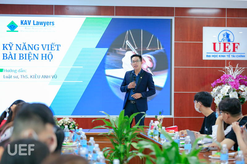 Để giúp các bạn sinh viên Luật UEF hiểu hơn về kỹ năng thiết yếu này cũng như rèn luyện ngay khi còn ngồi trên nghế Nhà trường, khoa Luật đã tổ chức buổi tập huấn “Kỹ năng viết bài biện hộ” vào sáng ngày 20/4, với sự đồng hành, chia sẻ của Luật sư - ThS. Kiều Anh Vũ đến từ Công ty Luật KAV Lawyers.